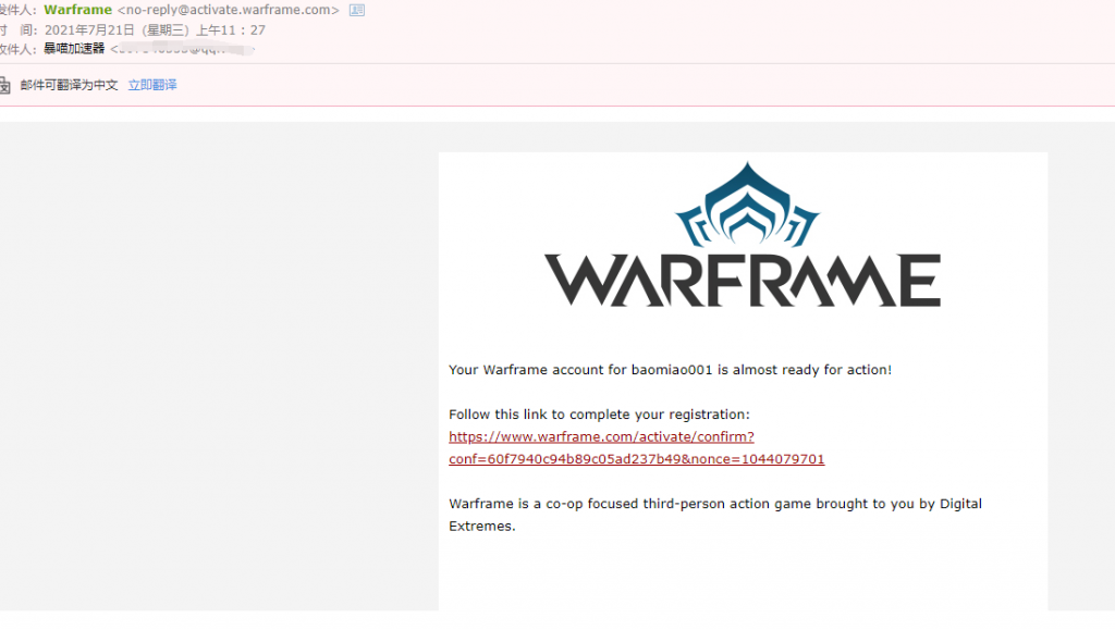 warframe注册邮件